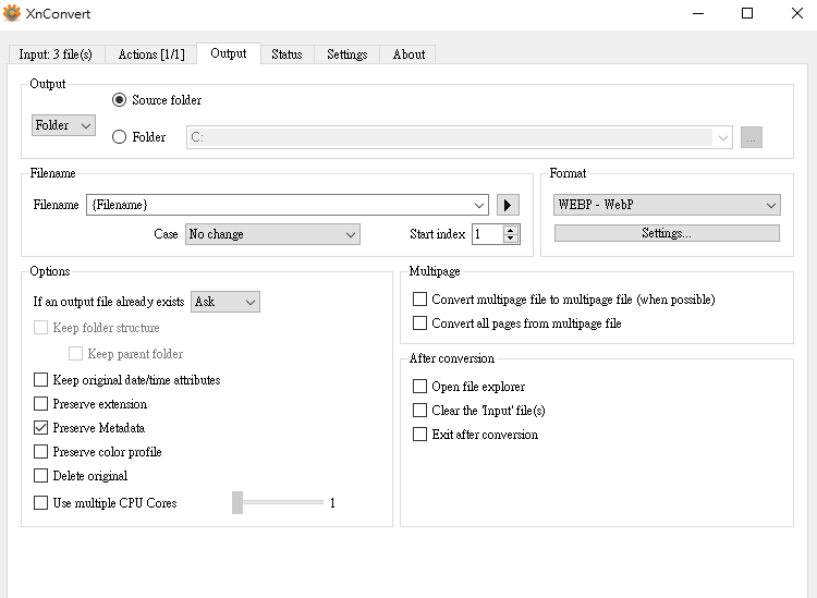 雖然 Xnview 的 UI 用起來沒 IrfanView 順手, 但這是目前找到最簡單的處理方法