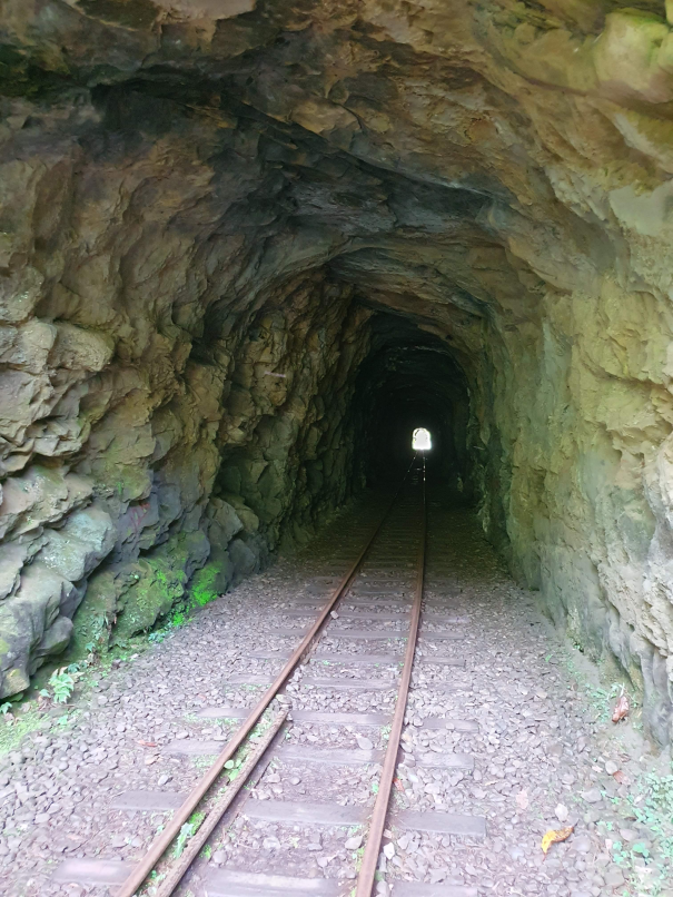 第一次體驗走崩塌隧道, 伸手不見五指的情況下靠頭燈照明, 從亂石間攀過, 有股探險感, 但也不自覺想像地震時隧道裡會是什麼風景, 不知會不會有落石砸落, 大概只能求神拜佛請菩薩保佑; 下山時在沼平車站吃碗關東煮, 熱湯撫慰了整天走路的疲憊, 這就是幸福